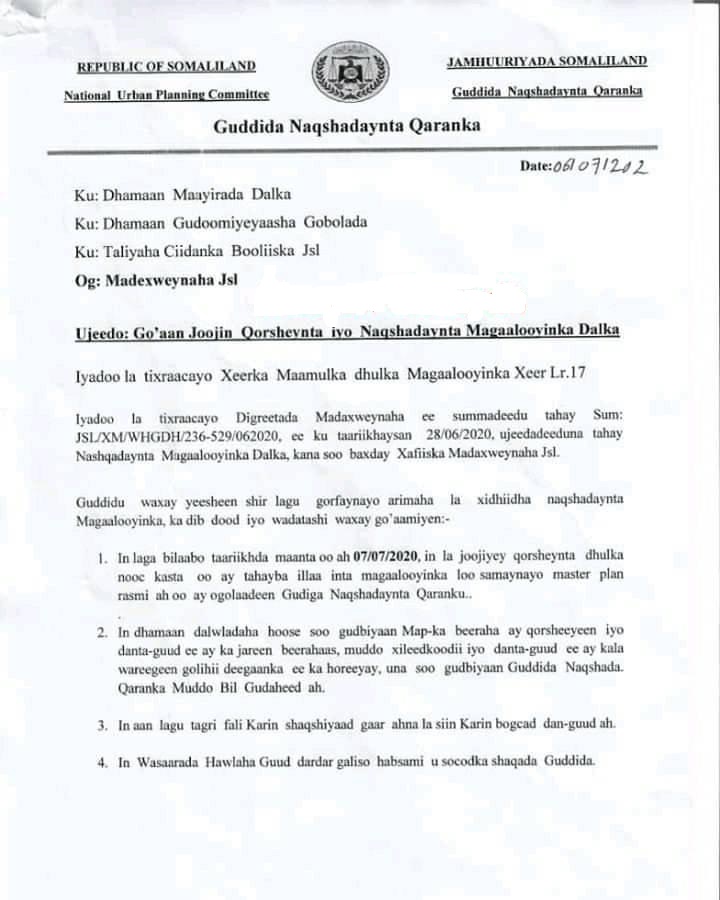 Xukuumada Oo Go'aan Ka Soo Saartay Qorshaynta Iyo Naqshadaynta Magaalooyinka