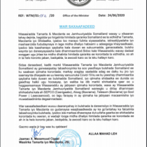 Wasiirka Warfaafinta Oo Farriin U Diray Maayirrada Dalka