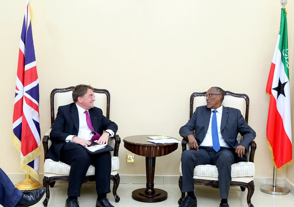 Madaxweynaha Somaliland Oo Xafiiskiisa Ku Qaabilay Wefti Uu Hogaaminayo Safiirka UK U Qaabilsan Soomaaliya+Sawiro