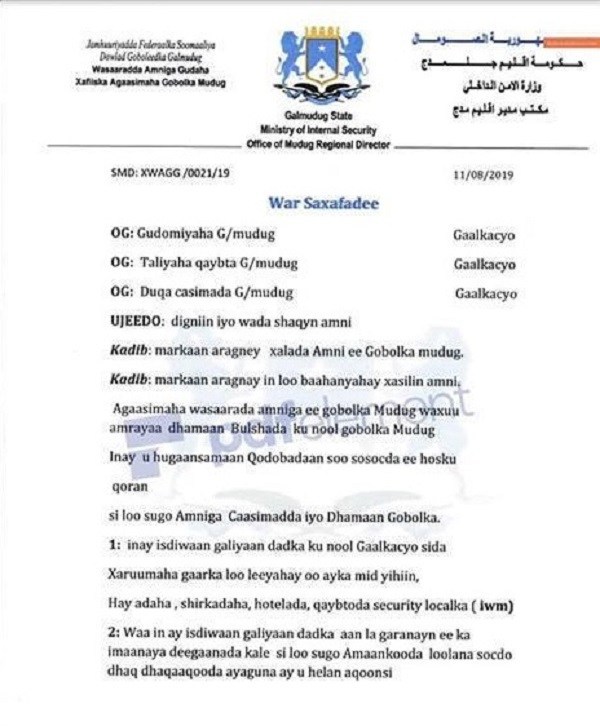 Maamulka Galmudug Oo Shaaciyey Amaro Ku Socda Shacabka Koonfurta Gaalkacayo
