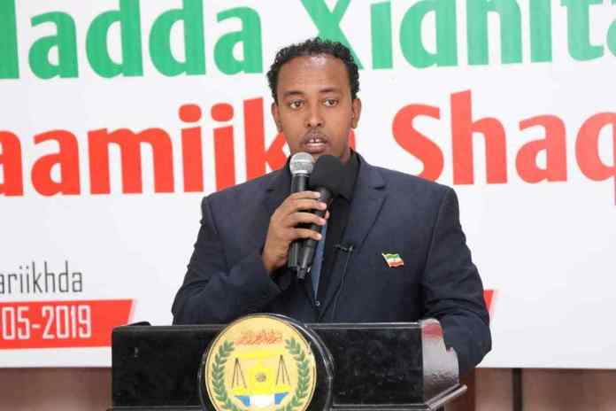 Nuxurka Khudbad Wasiirka Gaashaandhigga Somaliland Ka Jeediyay Xaflada Xidhitaanka Barnaamijka Shaqo Qaran. SAWIRO
