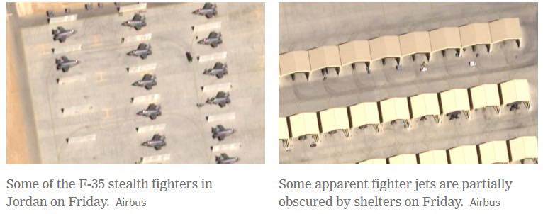 Warbixinta ayaa tilmaamaysa in saldhiggan uu isu beddelay mid si ballaadhan loogu kordhiyay awoodda hawlgallada militari, kaddib markii saddex jibbaar la kordhiyay tirada diyaaradaha dagaalka ee halkaasi la geeyay. Sawirrada la daabacay ayaa muujinaya ku dhowaad 60 diyaaradood oo dagaal, oo ay ku jiraan nooca casriga ah ee F-35, kuwaas oo la dhigay saldhigga.