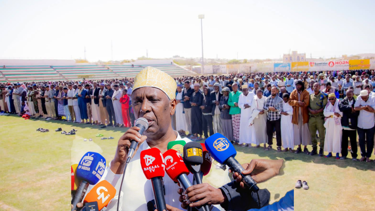 Hargeysa – Madaxweyne ku-xigeenka Jamhuuriyadda Somaliland, ahna Guddoomiyaha Guddida Heer Qaran ee Gurmadka Abaaraha, Mudane Maxamed Cali Aw Cabdi, ayaa maanta shacabka kula tukaday Salaadda Roob-Doonta oo lagu qabtay Garoonka Weyn ee Kubadda Cagta ee Hargeysa.