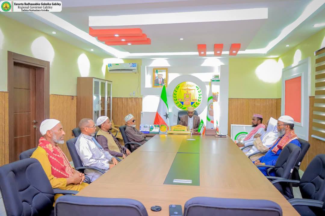 Guddoomiyaha Gobolka Gabiley, Mudane Maxamuud Xasan Saleebaan (Doob), ayaa kulan muhiim ah la yeeshay culimada magaalada Gabiley, kaas oo diiradda lagu saaray arrimo la xidhiidha diinta, wacyigelinta bulshada iyo xoojinta wada shaqaynta.