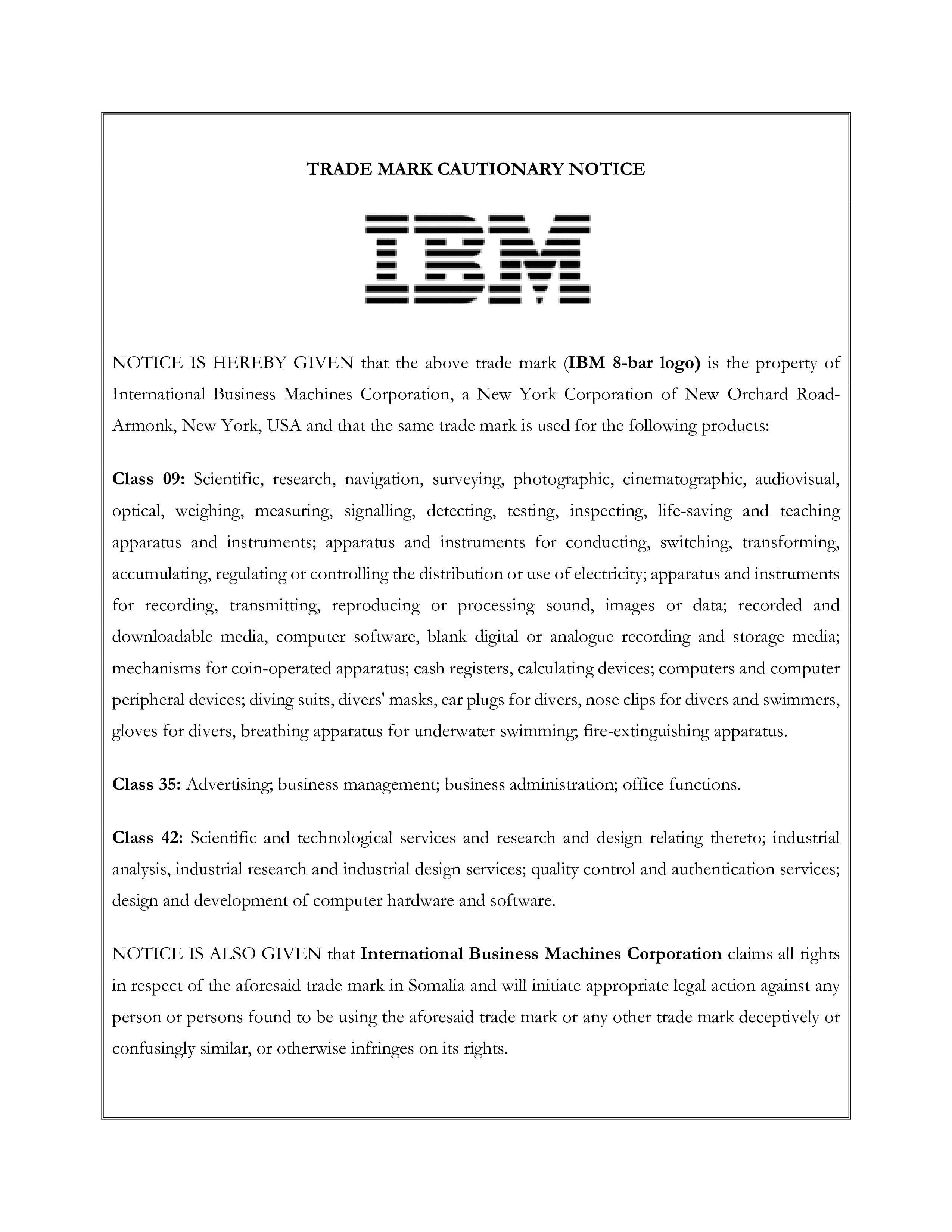 Trade Mark Cautionary Notice - IBM Logo