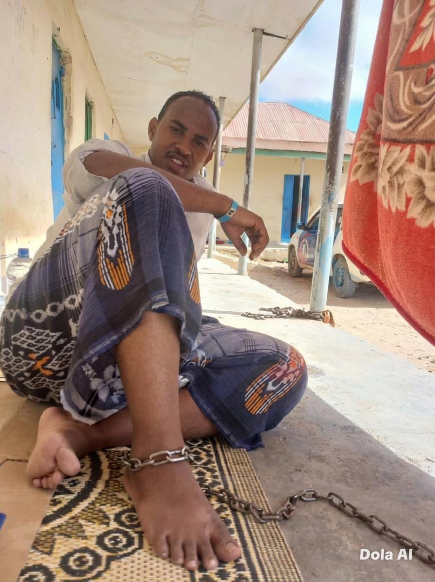 Warar laga helayo magaalada Laascaanood ayaa sheegaya in suxufi ku xidhan jeel ku yaalla halkaas lagu hayo xaalad adag, iyadoo lugta lagaga xidhay silsilad.